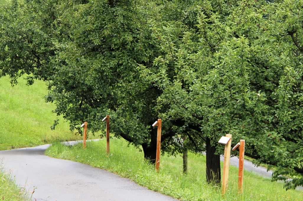 Es ist eine leichte und kurze Wanderung inmitten der Obstbäume. Der Pfad ist von März bis Oktober frei zugänglich. Einige von den 30 verschiedenen Obstsorten sind ProSpecieRara-Sorten. Es handelt sich somit um standortspezifische Kulturpflanzen, die vom Aussterben bedroht sind.